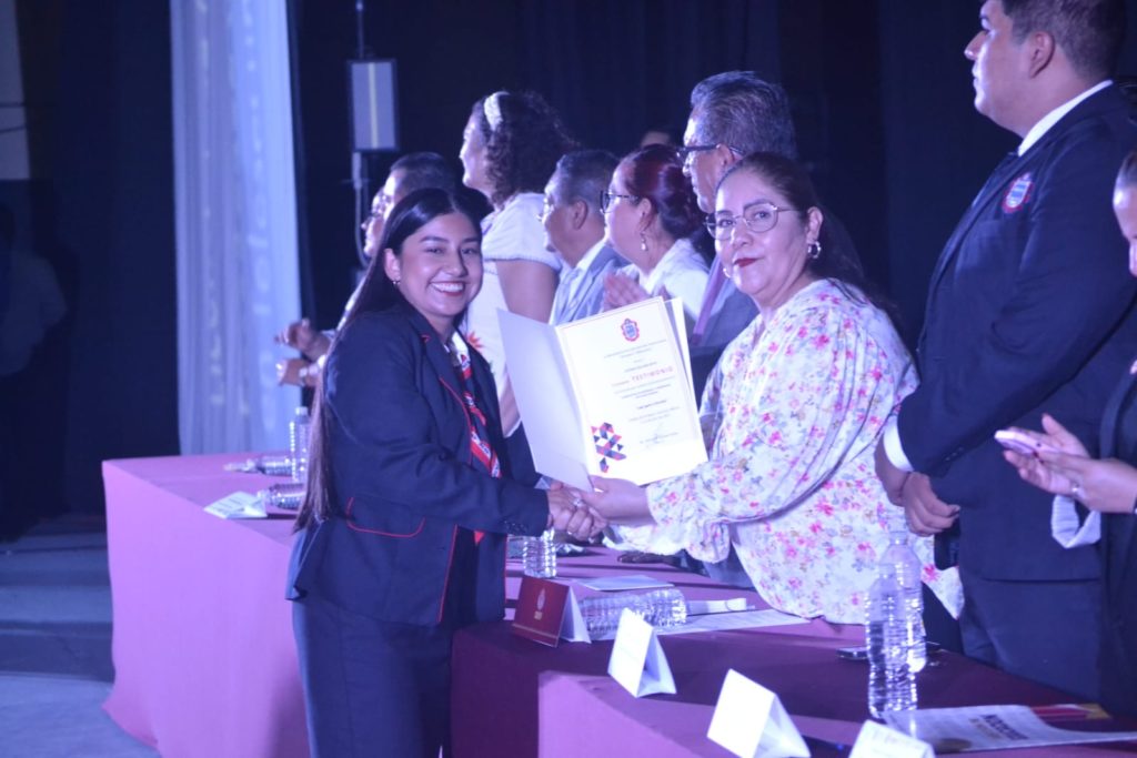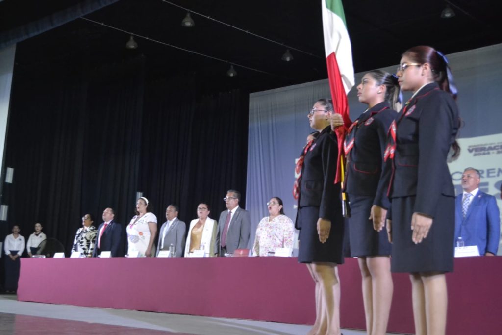 Durante la ceremonia, realizada en el auditorio de la BENV, se entregaron reconocimientos académicos a estudiantes destacados; la secretaria de Educación de Veracruz, Claudia Tello Espinosa, reconoció el papel que desempeñan las y los nuevos profesionales en el sistema educativo y reiteró la importancia de su labor dentro del modelo de la Nueva Escuela Mexicana.