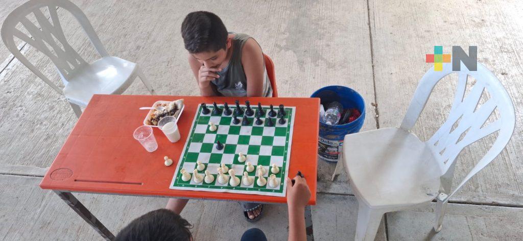 Los salones sirven como dormitorios y en la cancha la gente descansa y recibe atención médica del personal del IMSS Bienestar. Los niños juegan en el pasto, incluso practican ajedrez, lejos de sus casas que días antes fueron casi cubiertas por el agua.
