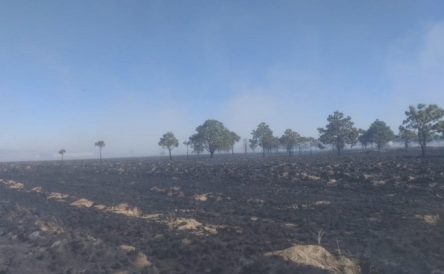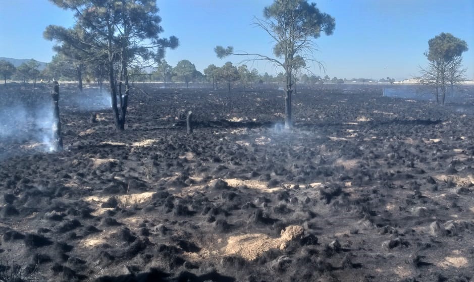 26/a. Zona Militar, informó que personal militar perteneciente al 111/o. Batallón de Infantería ubicado en Perote, participa en la sofocación de un incendio de aproximadamente 11 hectáreas consumidas de pino y pastizal, en la carretera 140 Xalapa-Perote inmediaciones del Centro Ecuestre.