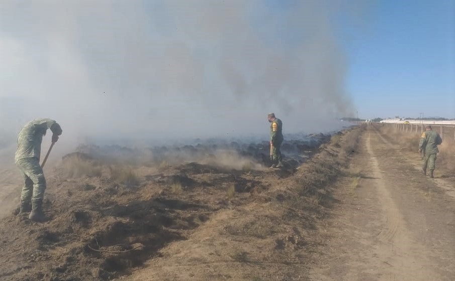 Las acciones de los elementos de la Sedena evitan que continúe propagándose el fuego y afecte áreas aledañas.