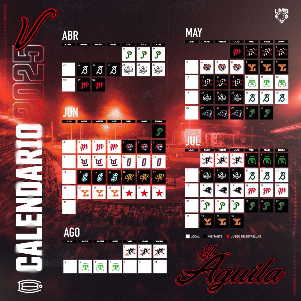 Destaca que la histórica Serie Roja, protagonizada por El Águila y los Diablos Rojos, se enfrentarán tres veces en la temporada, dos de ellas en el Estadio Beto Ávila.