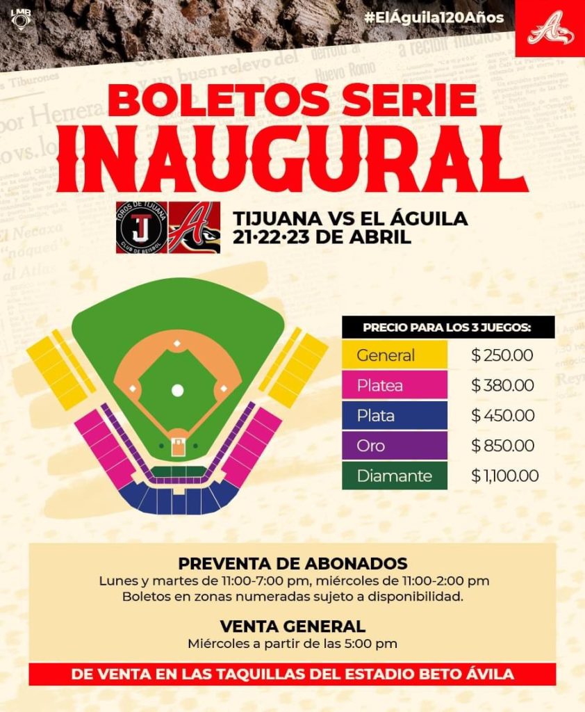Boca del Río, Ver.- La directiva de el Águila de Veracruz anuncia el inicio de la venta de boletos para el juego inaugural de la campaña en el estadio Beto Ávila.
