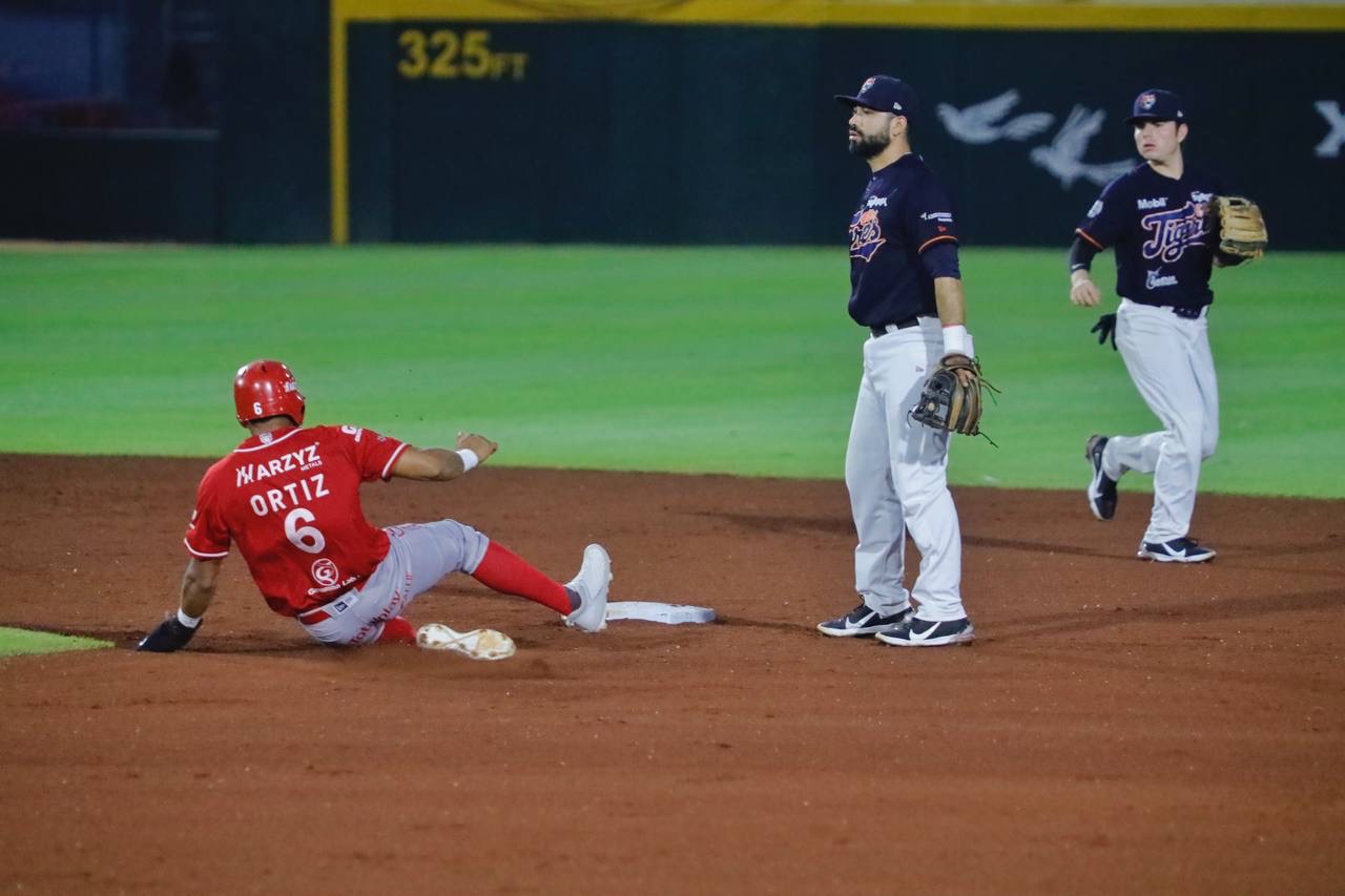 Los Tigres respondieron rápidamente el ataque y en la baja del primer capítulo, ante David Reyes, Olmo Rosario conectó “tubey” al derecho y mandó a la registradora a Tito Polo, 1-1, juego nuevo en el caribe mexicano.
