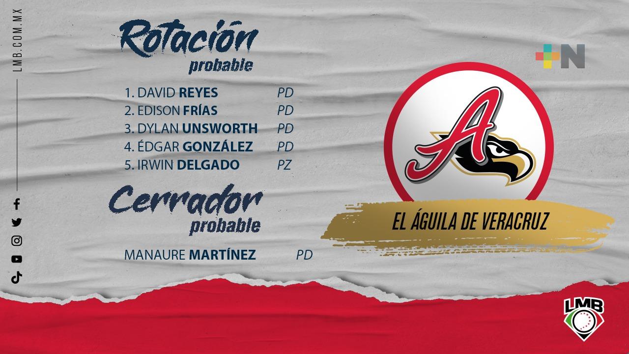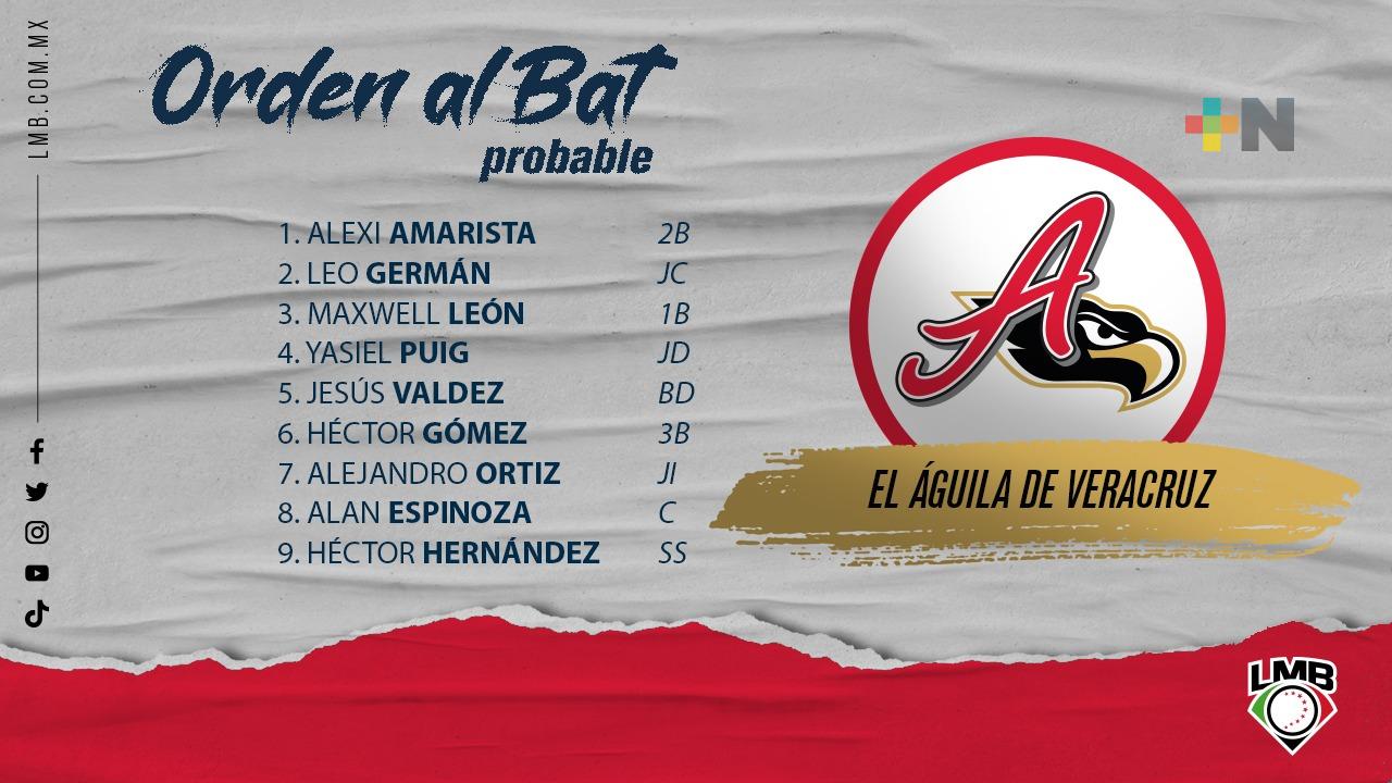 Así luce el orden al bat y rotación de pitcheo de El Águila de Veracruz