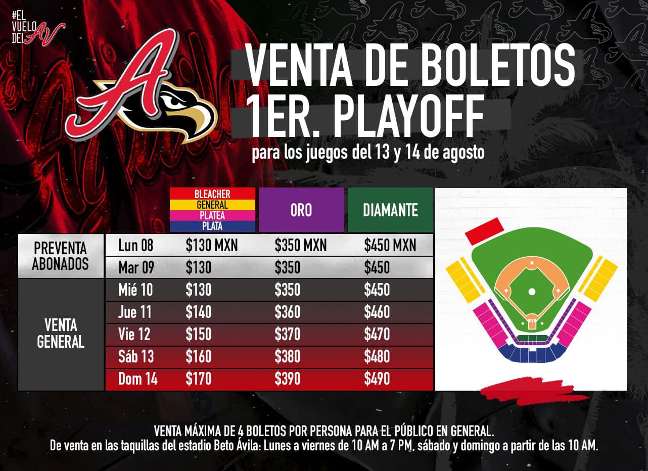 Boca del Río.- La Dirección General de El Águila de Veracruz da a conocer el inicio de la venta de boletos para abonados y público en general para el primer Playoff ante los Diablos Rojos del México.