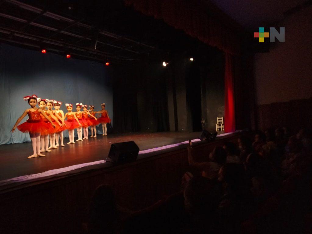 “Dividimos los espectáculos por edades, tenemos niños a partir de los 3 años en ballet clásico, jazz, danza aérea y próximamente tenderemos tap, así que el próximo año estrenaremos con tap y tenemos alumnos desde los 3 años hasta los 70, es decir, tenemos adultos mayores que hacen ballet clásico que les ayuda con su coordinación, con su memoria, con la fuerza física, pero además nos divertimos muchísimo y estamos bailando, es decir, estamos conectados con el arte”, agregó Margarita Vargas Ortega, directora del Ballet Royal Xalapa.