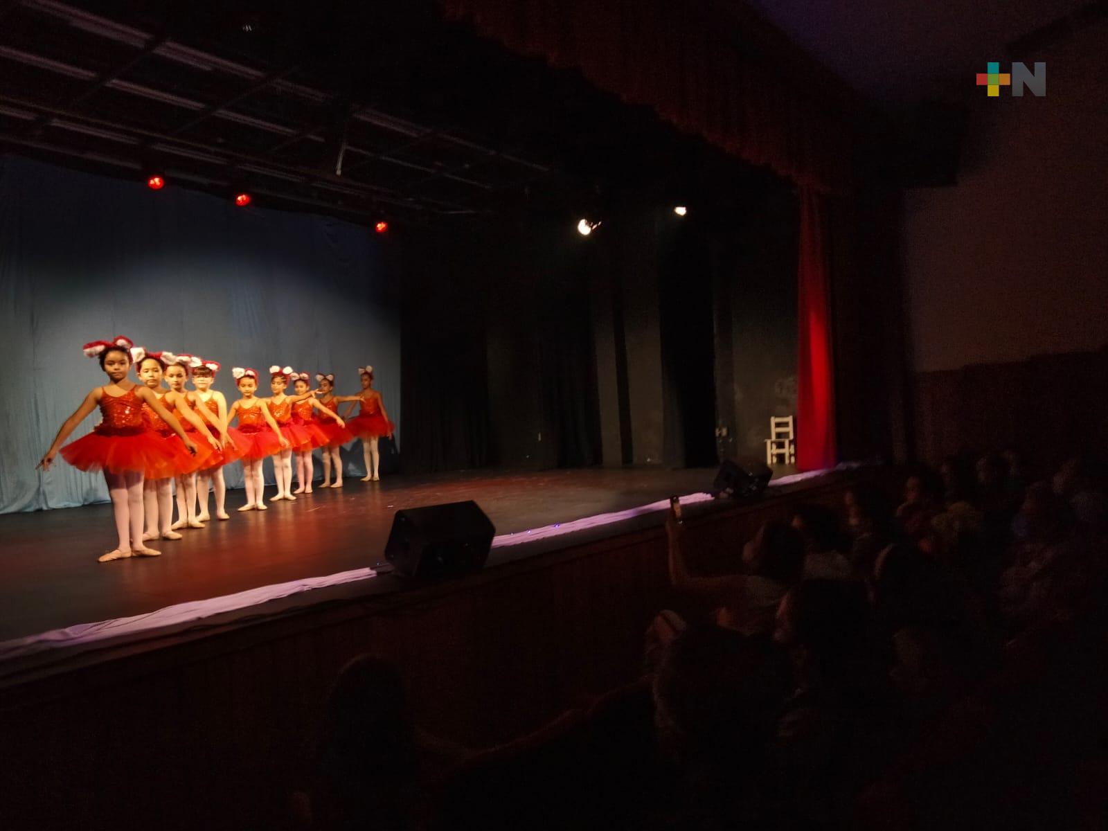 “Dividimos los espectáculos por edades, tenemos niños a partir de los 3 años en ballet clásico, jazz, danza aérea y próximamente tenderemos tap, así que el próximo año estrenaremos con tap y tenemos alumnos desde los 3 años hasta los 70, es decir, tenemos adultos mayores que hacen ballet clásico que les ayuda con su coordinación, con su memoria, con la fuerza física, pero además nos divertimos muchísimo y estamos bailando, es decir, estamos conectados con el arte”, agregó Margarita Vargas Ortega, directora del Ballet Royal Xalapa.