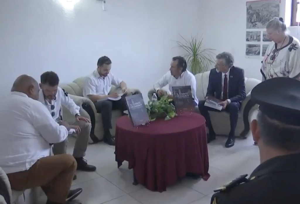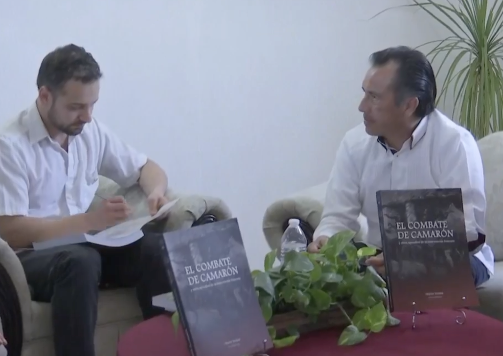 «Hoy en su 160 aniversario sino del amplio contexto que se vivió de la extensión que tuvo la presencia francesa en términos de ocupación y táctica militar en nuestro estado y del efecto mediático que tuvo en el ámbito nacional así como en la prensa francesa de la época quiero destacar que este libro histórico publicado por la editora de gobierno también hace historia porque sin duda es el primer libro especializado sobre el combate de Camarón en todo México y en todo el mundo.