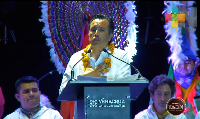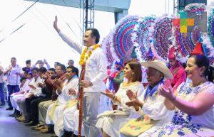 Papantla, Ver.- Al inaugurar el festival Cumbre Tajín “20 años Volando Alto”, el gobernador Cuitláhuac García Jiménez afirmó que este festival es un ejemplo de cómo se pude convivir con la cultura de los pueblos originarios y a la vez impulsar el desarrollo de los mismos.