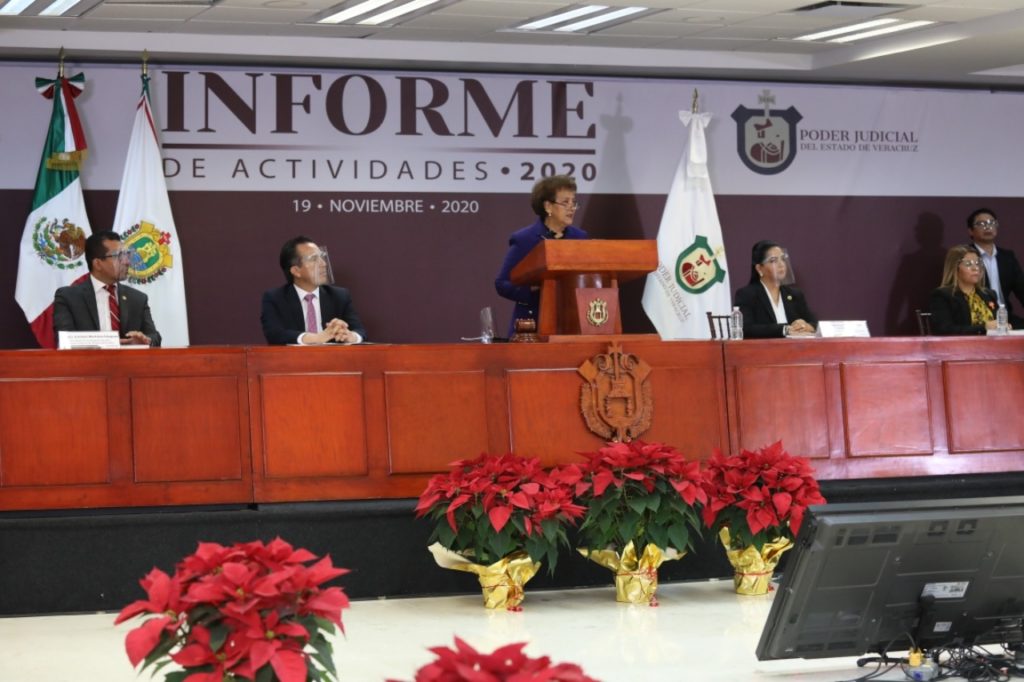 Xalapa, Ver.- Durante su Informe de Actividades, la presidenta del Poder Judicial del Estado de Veracruz, magistrada Isabel Inés Romero Cruz, expresó que en el Tribunal Superior de Justicia están seguros que el gobernador Cuitláhuac García Jiménez promueve verdaderas políticas públicas que redundan en el bien común.