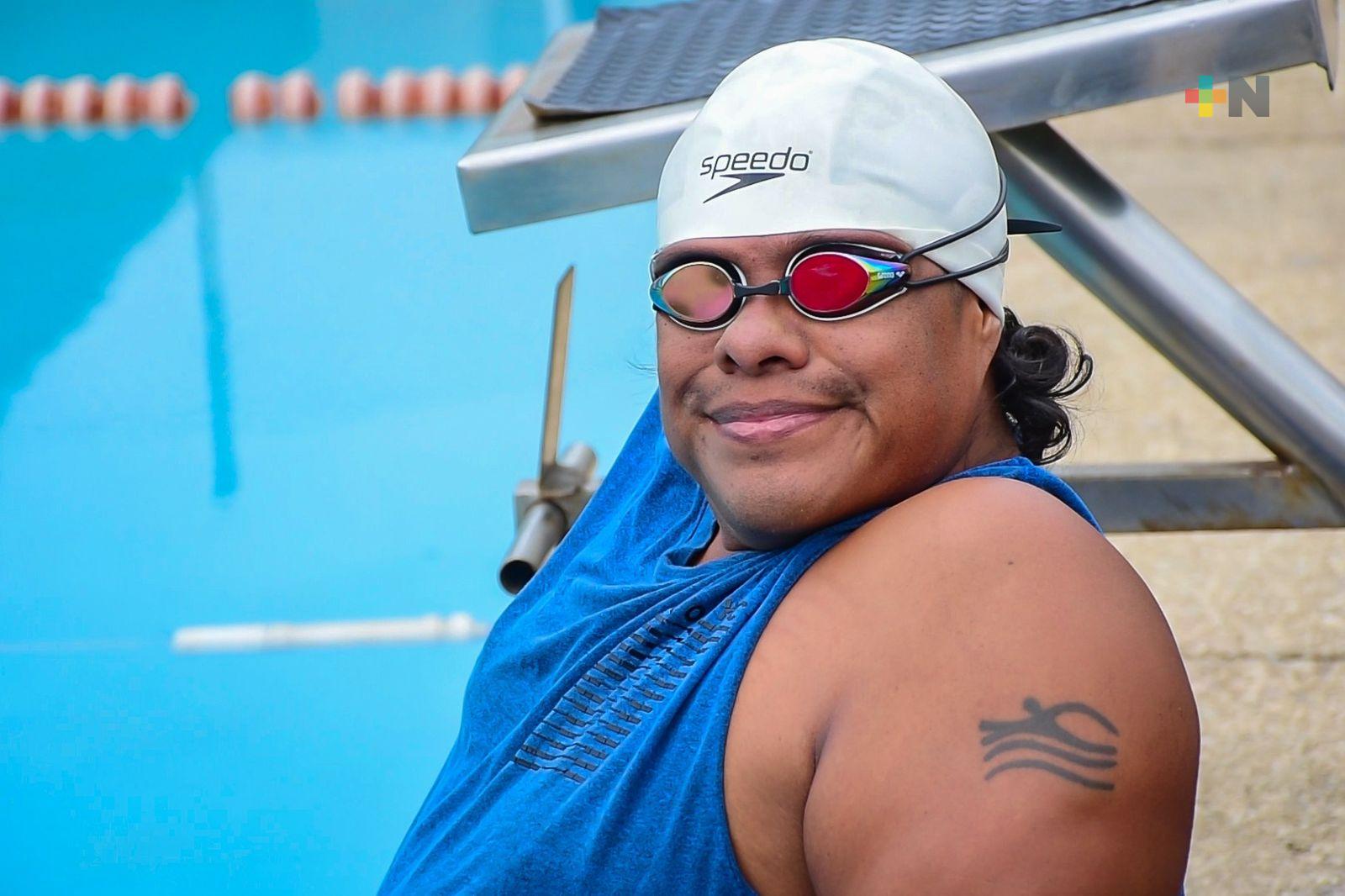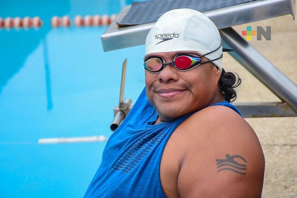 Coatzacoalcos, Ver.- Omar Osorio, nadador paralímpico cuatro veces medallista de oro, participó en el reto “Abrazando voluntades” de este fin de semana, el cual consistió en que nadaría por 12 horas y la gente donaría despensas, así como recursos económicos para dos causas.