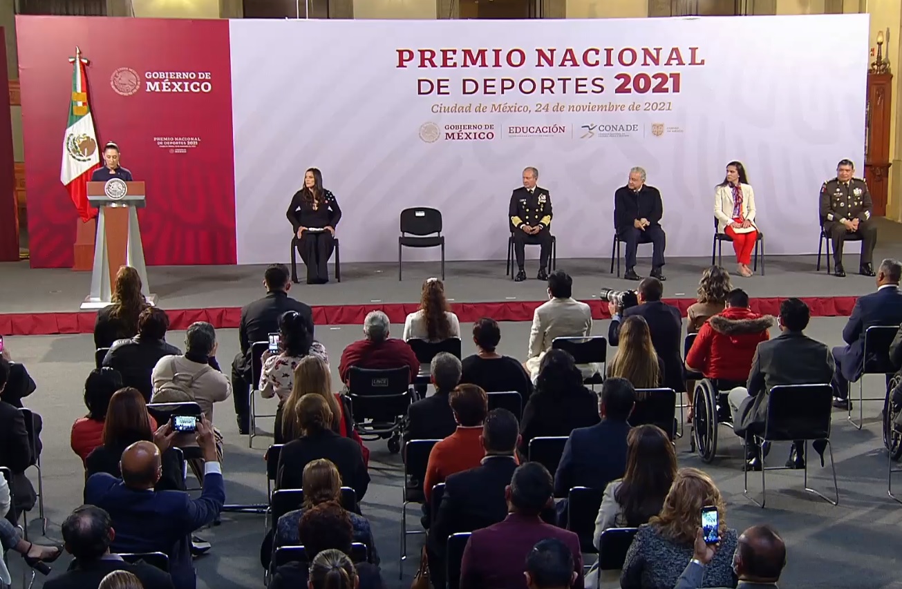 Ciudad de México.- “El deporte es fundamental, es básico y tiene una gama de virtudes, ayuda mucho en la formación de los jóvenes”, dijo el presidente de México, en la ceremonia de entrega del Premio Nacional de Deportes 2021 efectuada este miércoles por la mañana en Palacio Nacional.
