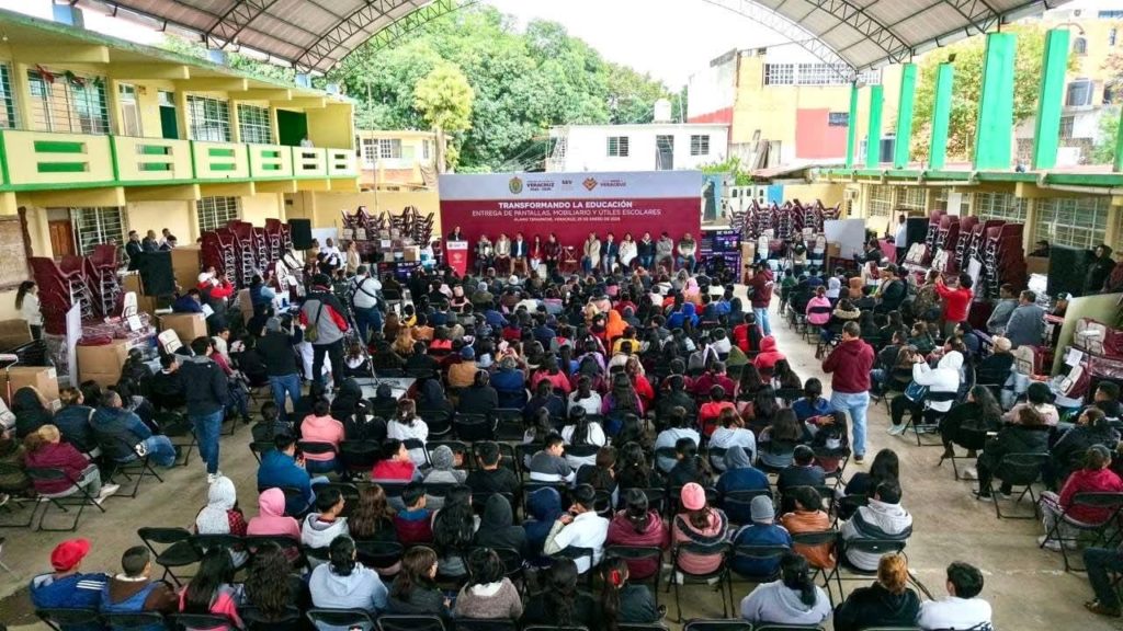 Acompañada de la secretaria de Educación de Veracruz, Claudia Tello Espinosa, y del alcalde José Roberto Arenas Martínez, informó que esta semana recibirán mochilas y útiles las niñas y los niños de preescolar, y la próxima, los de primaria, extendiendo el respaldo a municipios de la región Huasteca.