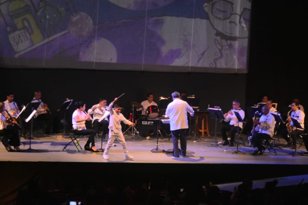 Con la notas musicales de la Banda Sinfónica del Gobierno del Estado de Veracruz, las aventuras del Señor Moon y su amigo el Señor Blu, las cuales obtuvieron el primer lugar en la categoría Amateur del 10° Concurso de Cuento Infantil, arribaron a la urbe para deleitar a niños, niñas e incluso a los mayores con almas infantiles.