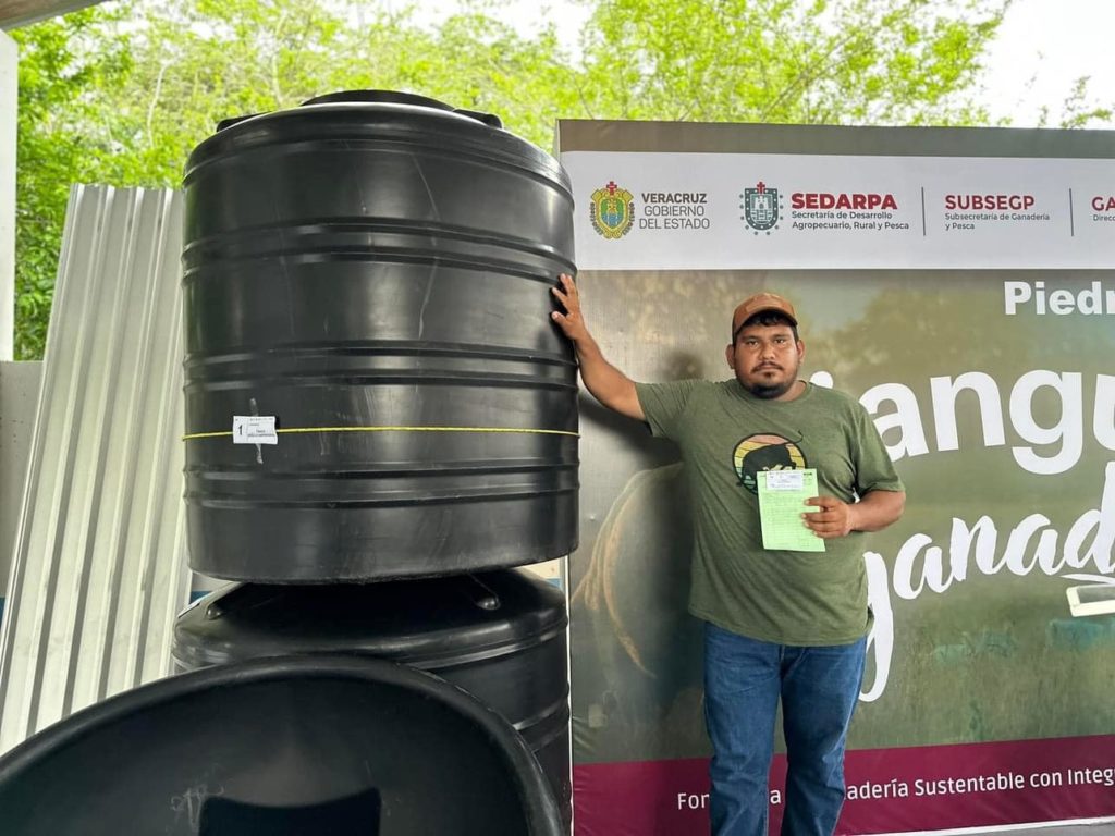 Xalapa, Ver.- En el municipio de Piedras Negras se llevó a cabo la entrega de bebederos de plástico de 600 litros, tinacos de plástico de 1,100 litros, aspersoras manuales de 20 litros, aperos y cercos eléctricos, así como rollos de alambres de púas y láminas.