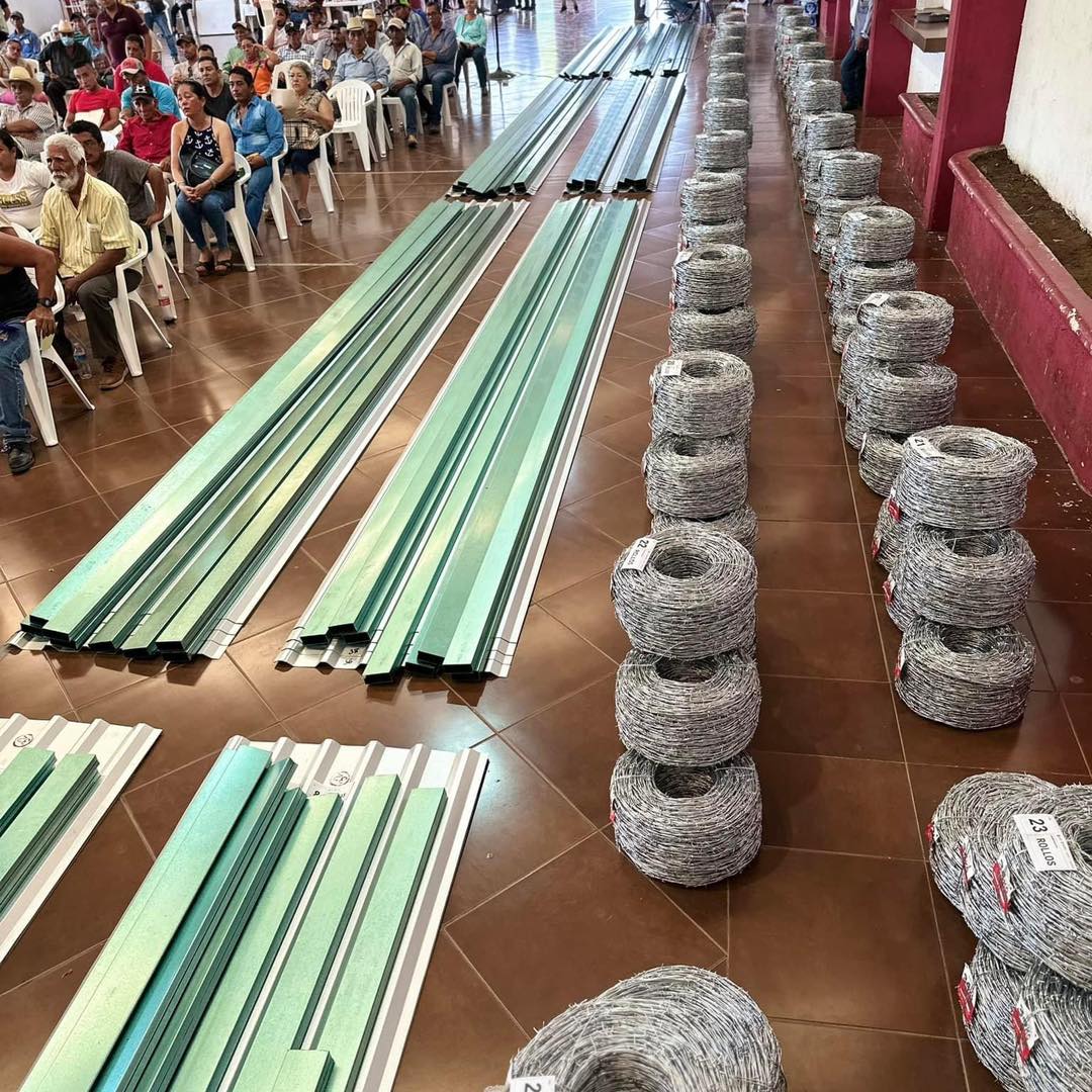 Asimismo, a través de los Tianguis Ganaderos se entregaron apoyos directos y sin intermediarios a productores del municipio de Ángel R. Cabada, donde dieron rollos de alambre de púas, láminas, canal cuadrado de 6.10×0.80 m. y casi 200 montenes tubulares de 6 m., con el firme objetivo de mejorar sus unidades de producción con cercos y galeras.