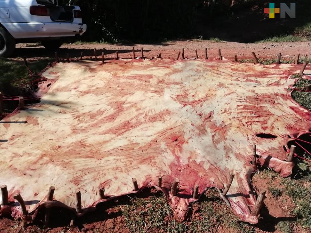 En su vivienda, lucen las pieles de vaca o toro que compra en los rastros y que pone a secar para posteriormente adherirlos a la madera.