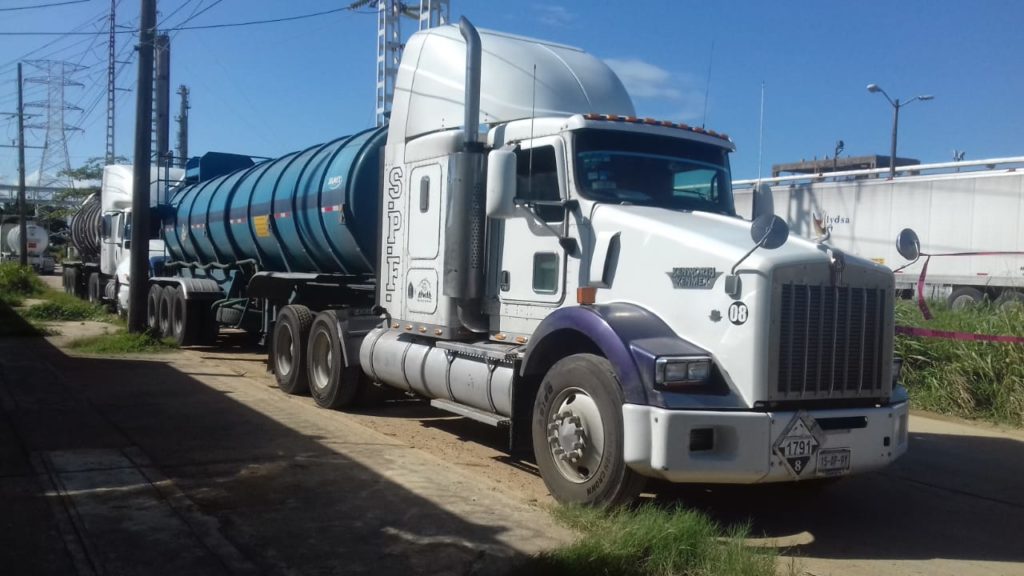 La tercera persona quien fungía como el conductor de la unidad, reveló que los maleantes lo abordaron y amenazaron con un arma de fuego para que entregara el vehículo de la marca Kenworth con placas de circulación 15-AP-9Y con remolque tipo cisterna, la cual esperaba el pase para cargar hipoclorito.