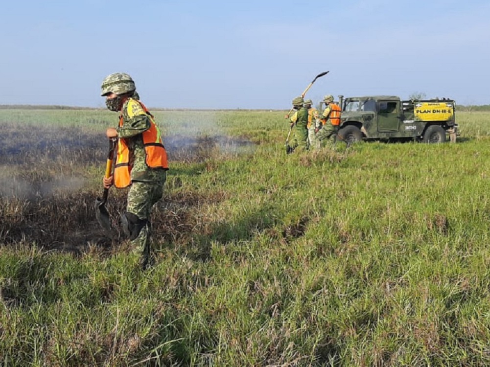 Elementos de Infantería sofocaron incendio en pastizal en municipio de Pánuco