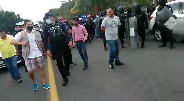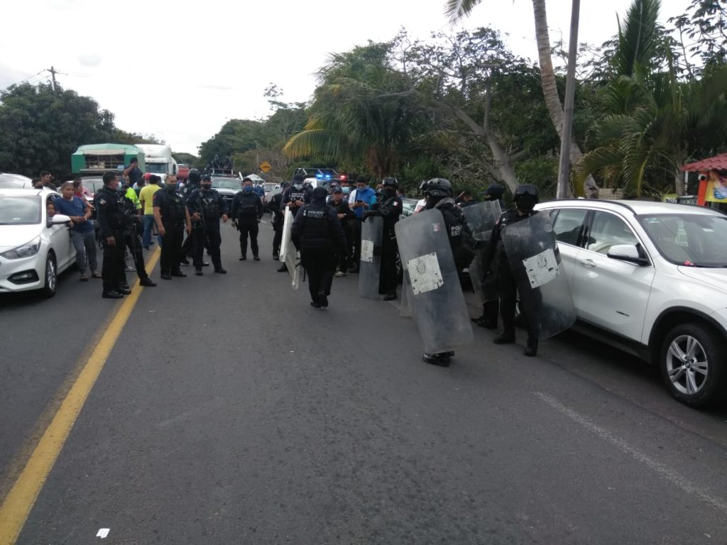 Alvarado, Ver.- Elementos antimotines de la Secretaría de Seguridad Pública, se vieron obligados a actuar y mediante el uso de la fuerza pública retiraron a los manifestantes que bloqueaban la carretera costera del Golfo 180.