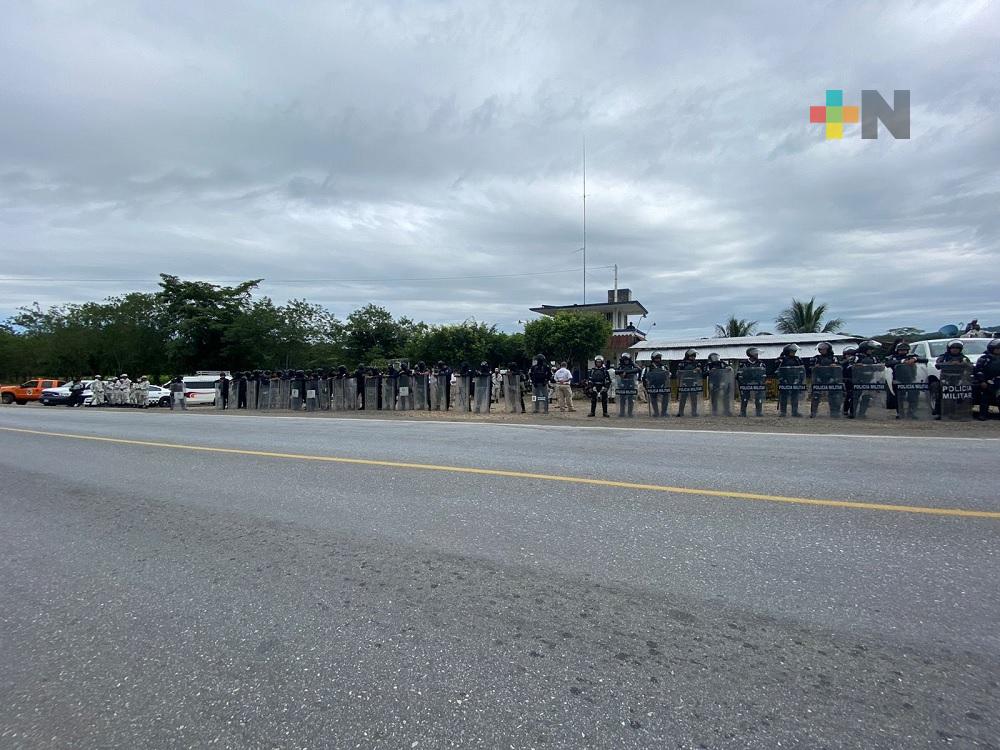 Elementos de seguridad esperan la llegada de migrantes a la entidad veracruzana
