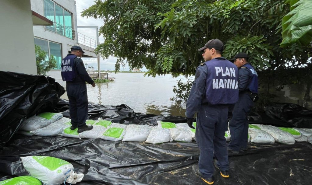 Por su parte, elementos del Plan Marina de Secretaría de Marina continúan instalando barreras de contención en domicilios a orilla del río Papaloapan.