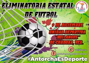 Xalapa, Ver.- Este sábado 9 de diciembre se llevará a cabo la Eliminatoria Estatal de Fútbol Soccer que organiza la Comisión Deportiva del Movimiento Antorchista en Veracruz.