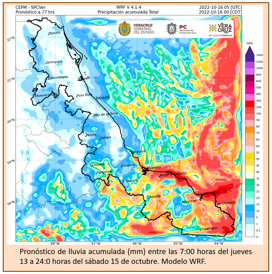 Los modelos de pronóstico muestran lluvias fuertes a muy fuertes especialmente entre las cuencas de los ríos Papaloapan al Tonalá durante viernes y sábado», así lo informaron en redes sociales.