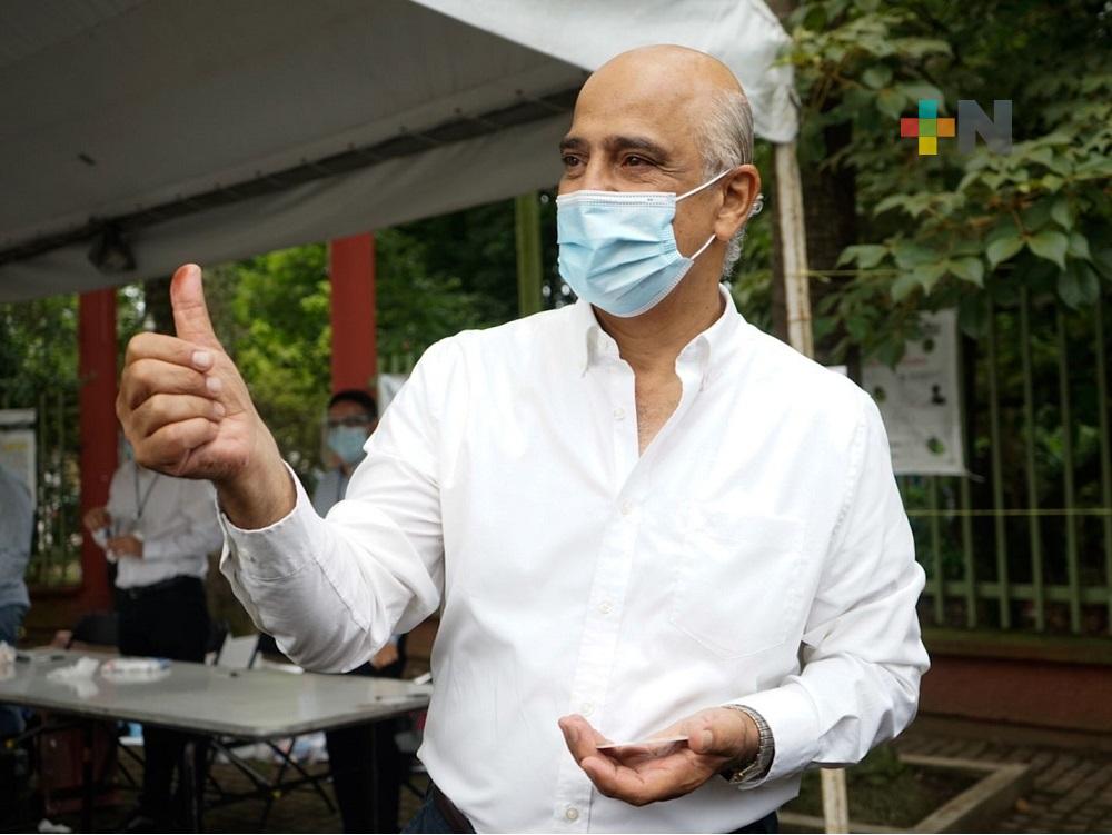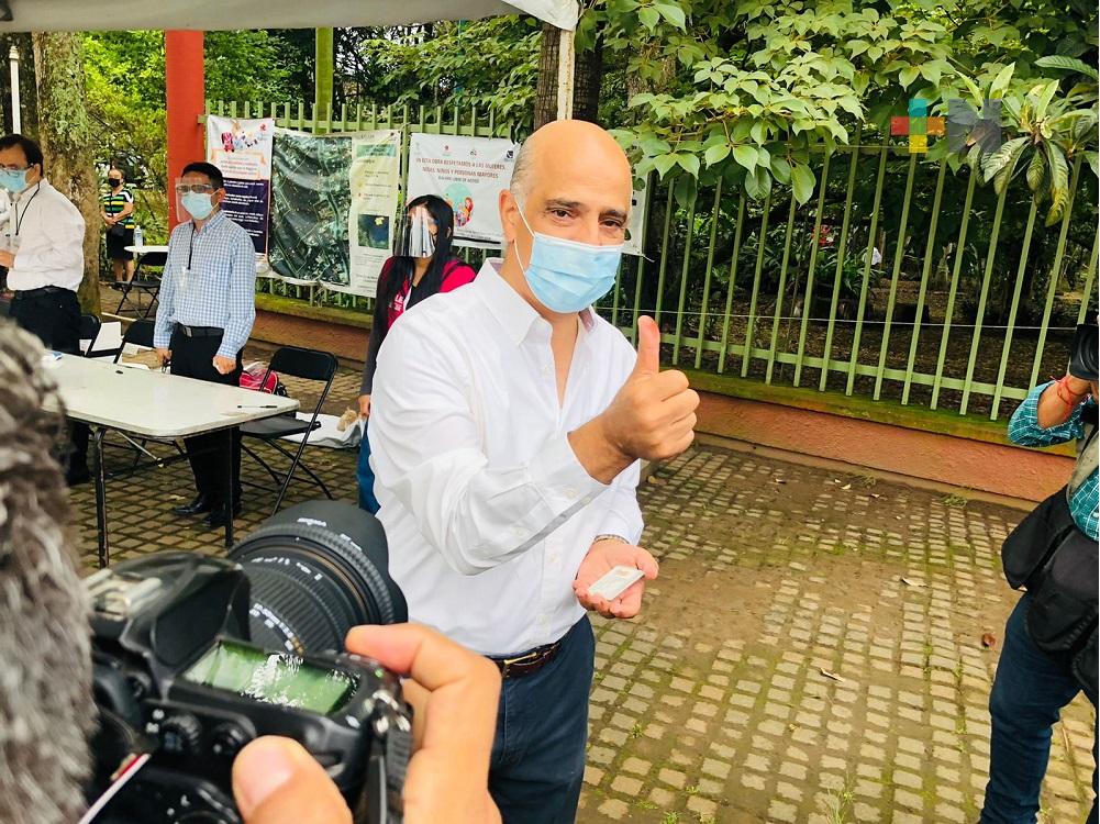 Xalapa, Ver.- Ricardo Ahued Bardahuil, candidato a la alcaldía de Xalapa, inició la jornada electoral de este domingo 6 de junio emitiendo su voto en la casilla 2027 del fraccionamiento Fuentes de Las Animas.