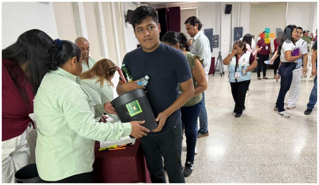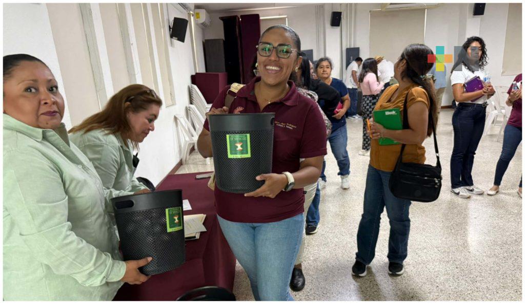 Coatzacoalcos, Ver.- Empleados del municipio de Coatzacoalcos recibieron cestos especiales para la separación de residuos orgánicos en sus oficinas.