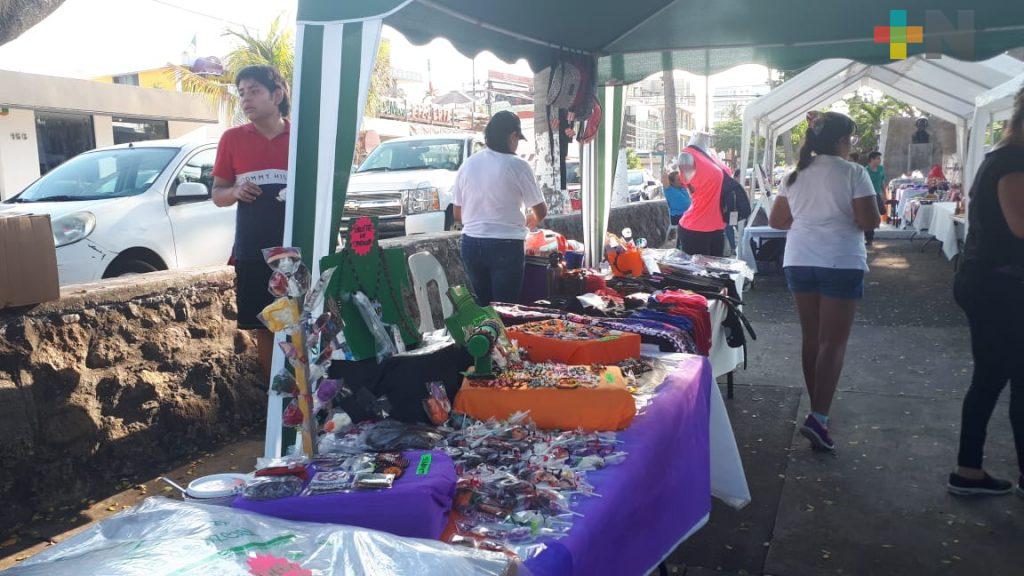 Veracruz, Ver.- Artesanos y productores participaron en la expo “Emprendedores Veracruzanos en Acción” que se llevó a cabo en el corredor Martí.