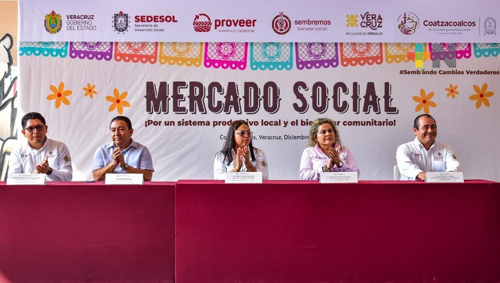 Coatzacoalcos, Ver.- Un total de 40 emprendedoras locales a través de la estrategia Sembremos Bienestar Común formaron parte del primer “Mercado Social” en Coatzacoalcos.