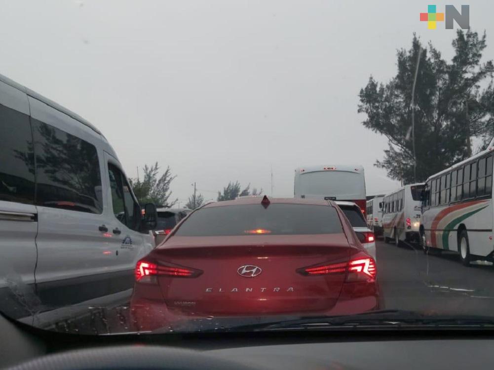 El congestionamiento vehicular del lado de Coatzacoalcos inicia poco antes de la excaseta en el acceso de la colonia Adolfo López Mateos,