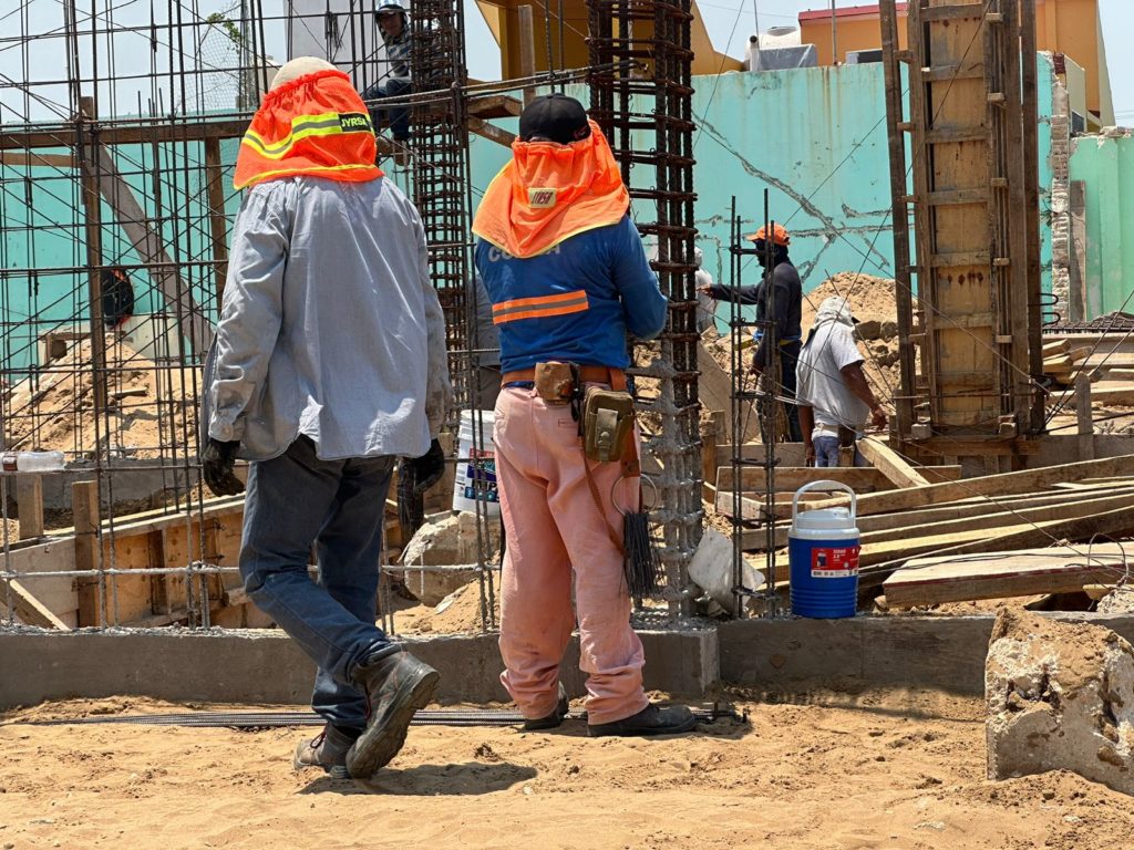 Iván Ordaz Aréchiga, presidente de la organización, precisó que aunque no han suspendido las obras, sí colocaron puntos de hidratación, además de modificar los horarios de comida e ingreso para que el personal no esté expuesto al calor.