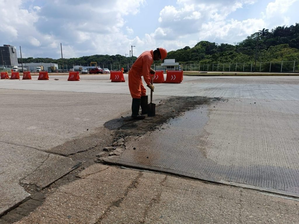 Empresas de Coatza aportan material y mano de obra para bacheo en vía costera