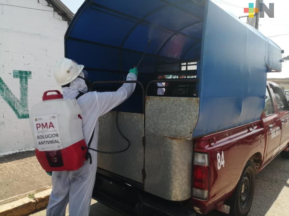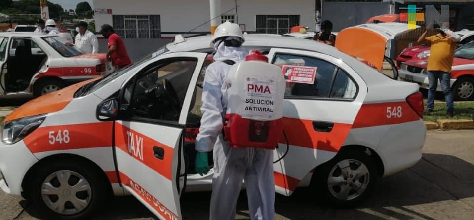 Acayucan, Ver- Con el objetivo de disminuir el riesgo de contagio para los usuarios del transporte público, autoridades estatales realizaron jornada de desinfección de transporte público en la región olmeca del estado.