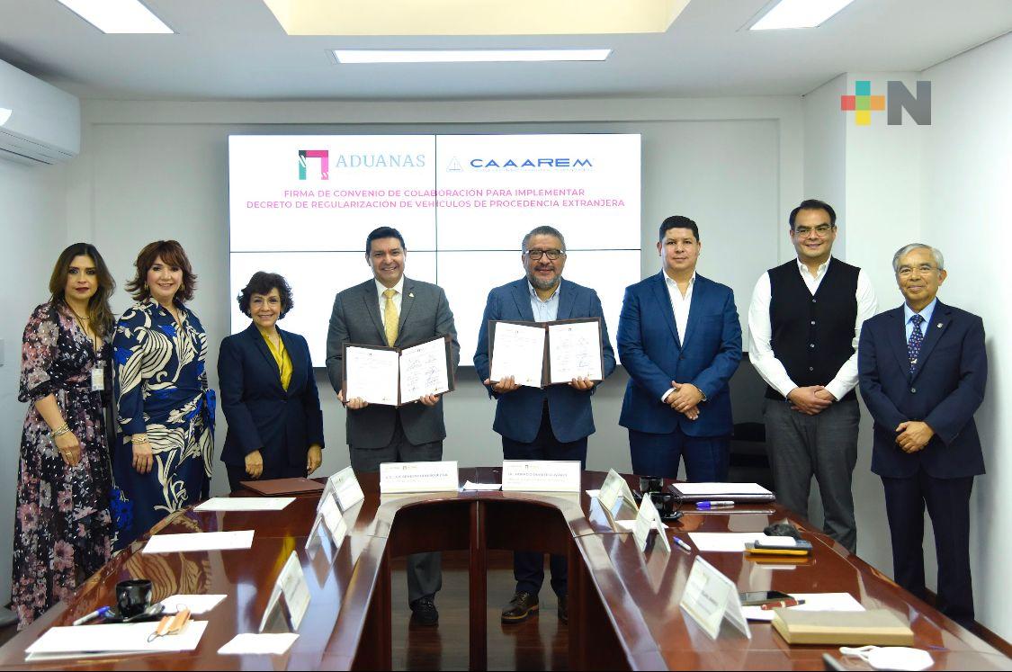 Horacio Duarte Olivares, Titular de la ANAM, y Luis Ernesto Rodríguez Gil, presidente del Comité Ejecutivo Nacional de la CAAAREM aseguraron que este convenio también busca facilitar y generar las condiciones en las aduanas involucradas, a fin de garantizar que los vehículos regularizados cumplan con las características legales y técnicas establecidas en el Decreto emitido.