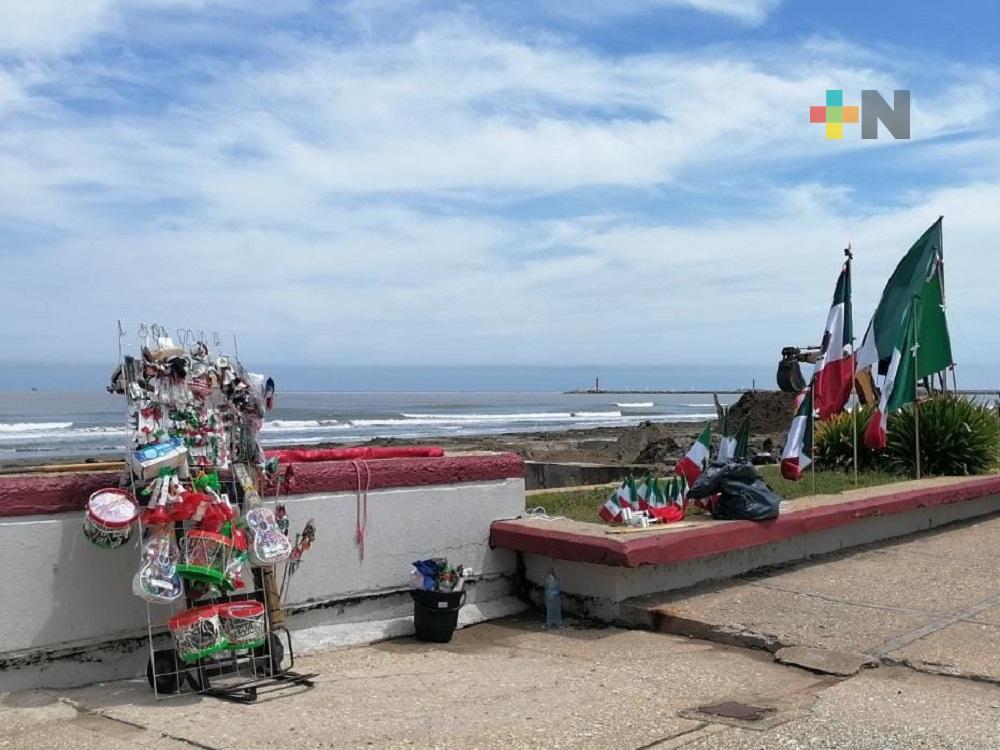 Coatzacoalcos, Ver.- Por segundo año consecutivo el Ayuntamiento de Coatzacoalcos, no emitió permisos para la venta de artículos patrios en el primer cuadro de la ciudad y la zona del Malecón Costero, por lo que vendedores optaron por rentar espacios a particulares para exponer sus productos.
