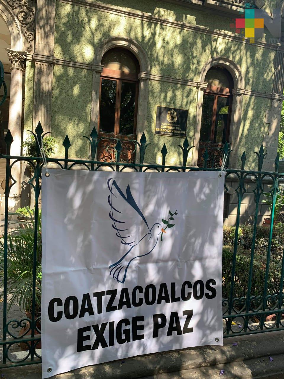 Coatzacoalcos, Ver.- Ciudadanos de Coatzacoalcos, radicados en la Ciudad de México, se manifestaron pacíficamente frente a la oficina de representación del gobierno del estado de Veracruz en la capital del país, para seguir exhortando a las autoridades a continuar con las estrategias para la recuperación de la paz en esta ciudad.
