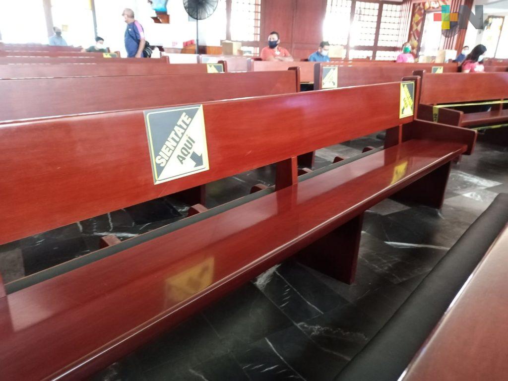 El acceso fue limitado a un número controlado de feligreses, además que se instaló un filtro para el chequeo de la temperatura, se les aplicó gel antibacterial y se acomodaron los asientos a modo de que se respetara la sana distancia.