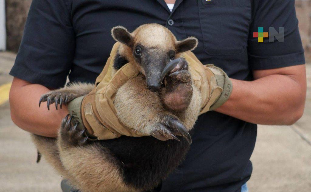 En Coatza continúa rescate de fauna silvestre; resguardan a oso hormiguero