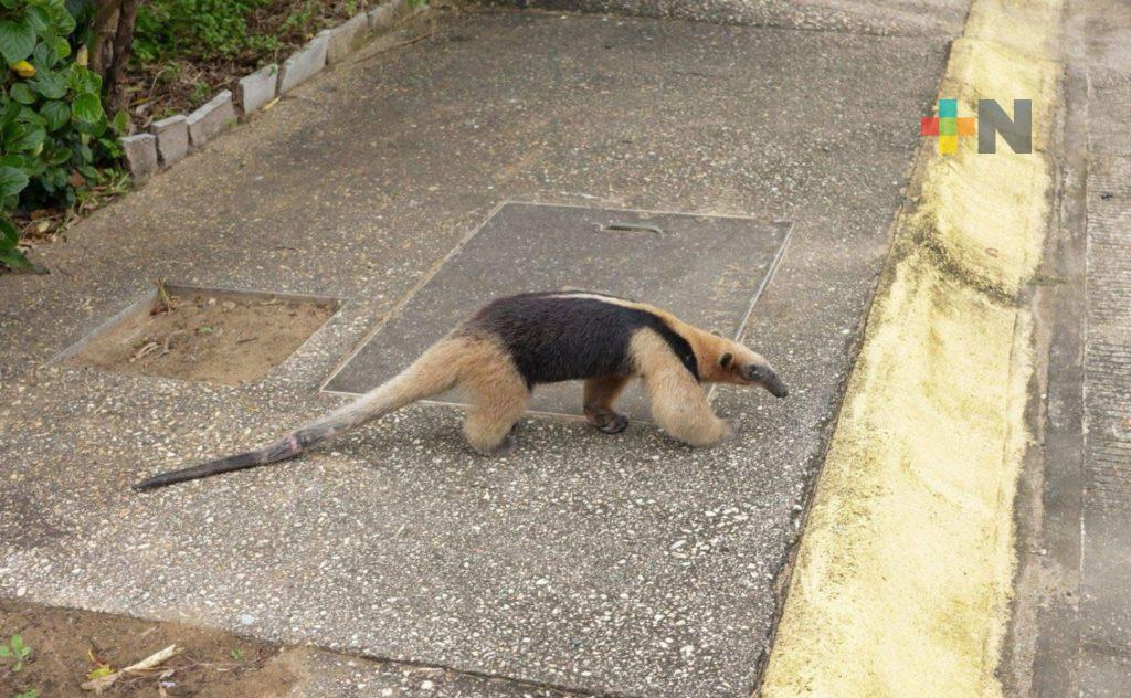 Autoridades de Coatzacoalcos siguen rescatando especies de la fauna silvestre que son localizadas en la zona urbana de la ciudad, ahora fue un oso hormiguero.