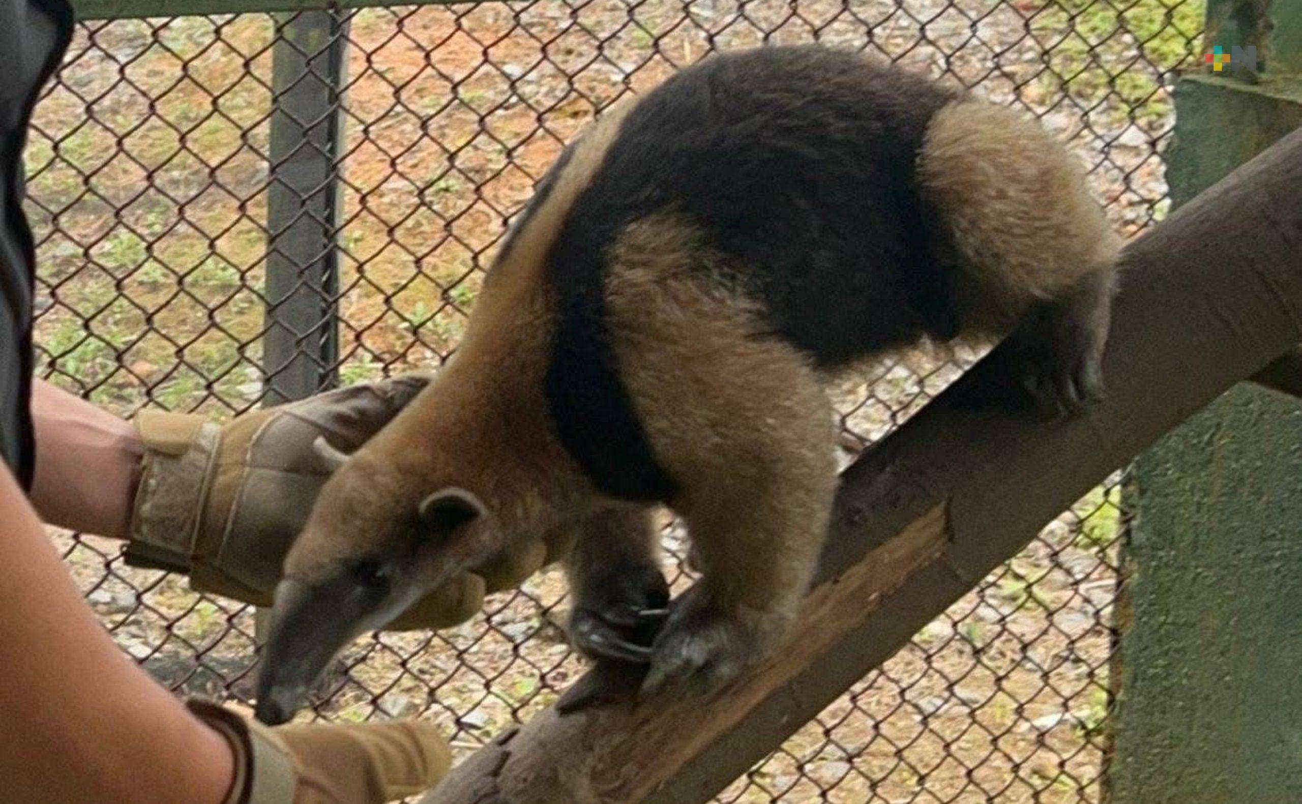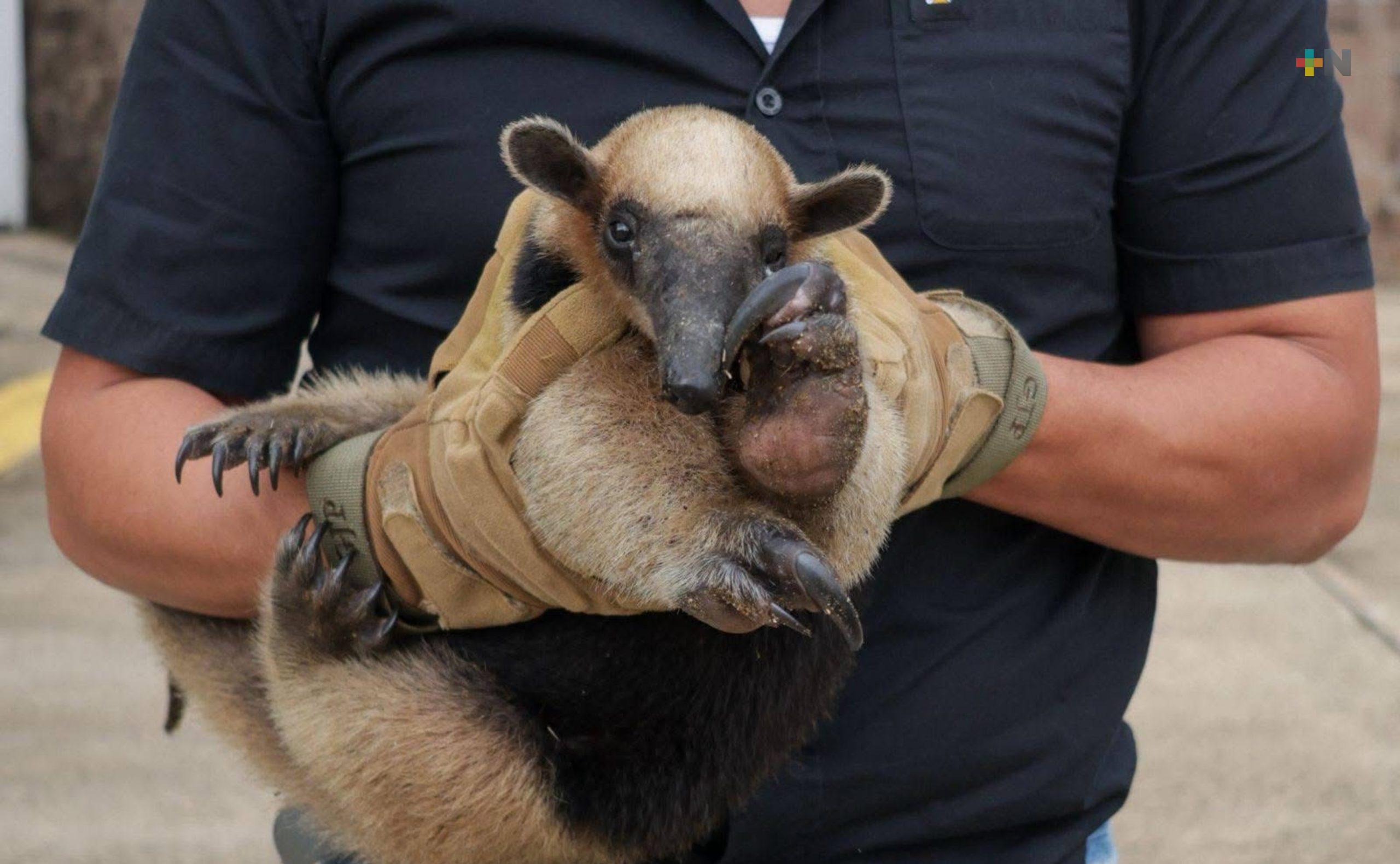 En Coatza continúa rescate de fauna silvestre; resguardan a oso hormiguero