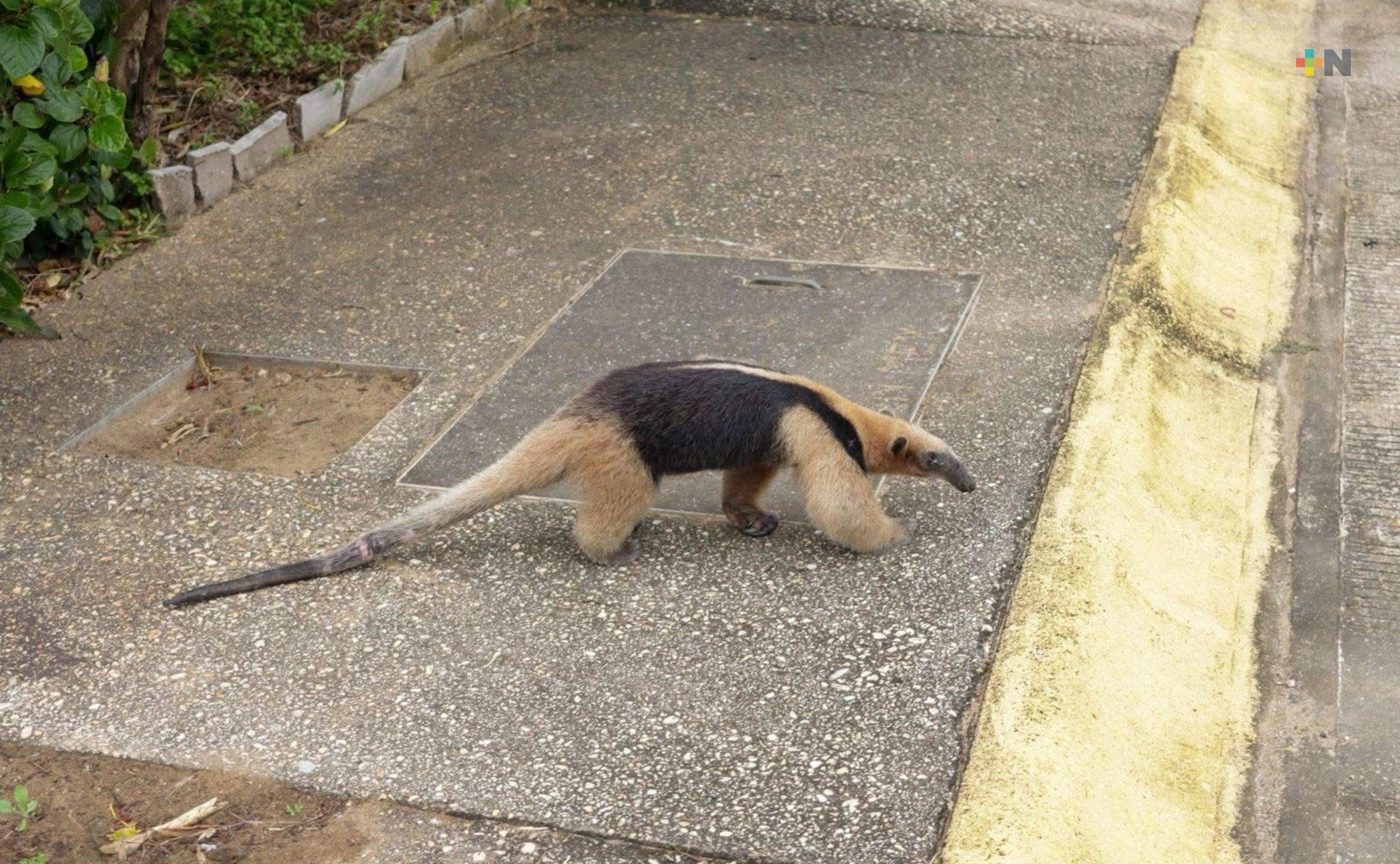 Autoridades de Coatzacoalcos siguen rescatando especies de la fauna silvestre que son localizadas en la zona urbana de la ciudad, ahora fue un oso hormiguero.