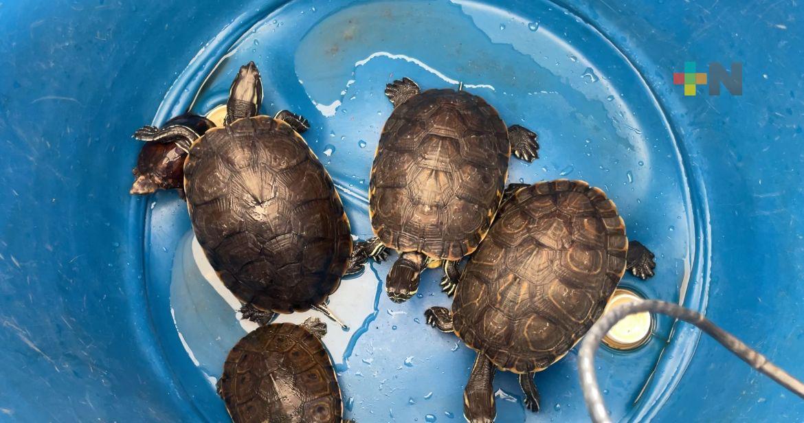 Tres cocodrilos y cinco tortugas fueron traslados por personal de Protección Civil y Bomberos de Coatzacoalcos a una Unidad de Manejo Ambiental.