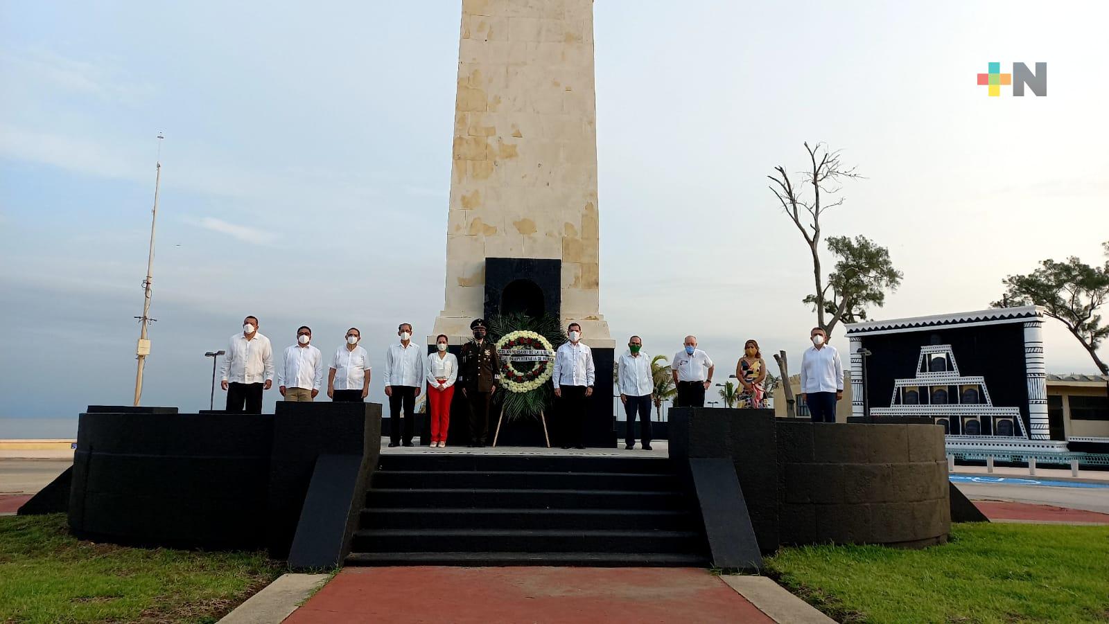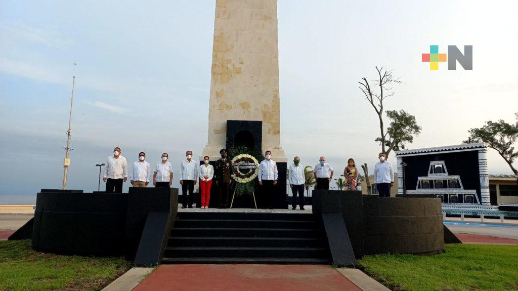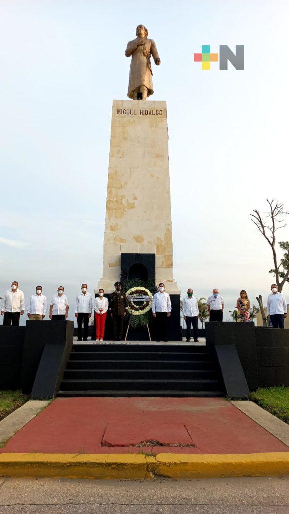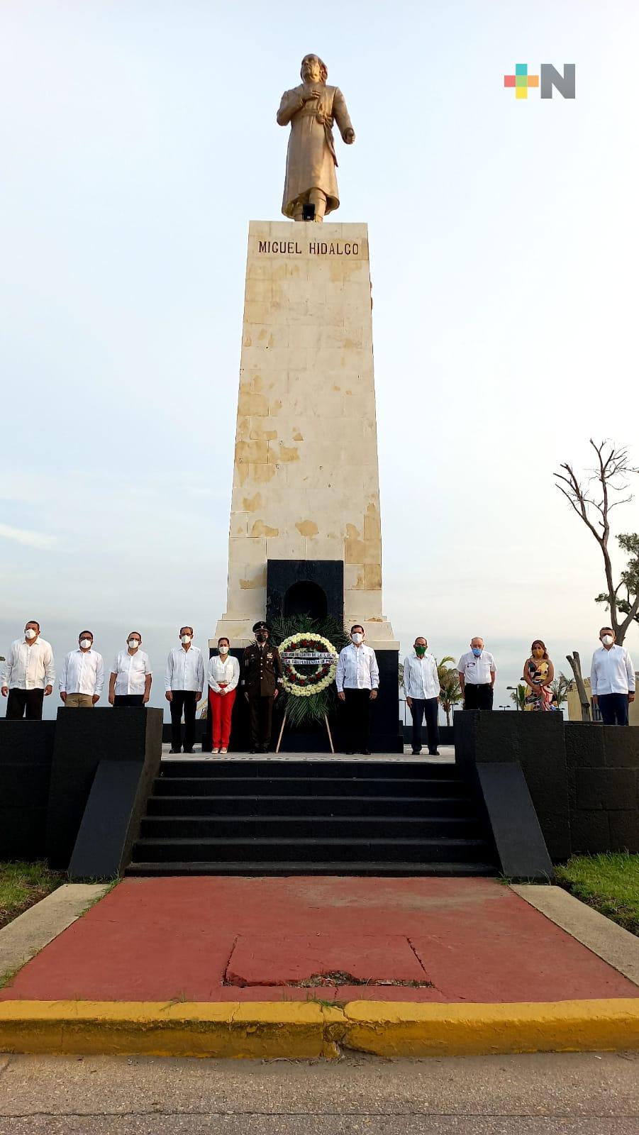 Coatzacoalcos, Ver.- Con una Guardia de Honor y depósito de una ofrenda floral en el monumento al Padre de la Patria, Miguel Hidalgo y Costilla, el alcalde de la ciudad, Víctor Manuel Carranza Rosaldo, rindió homenaje a los héroes que nos dieron patria y libertad.