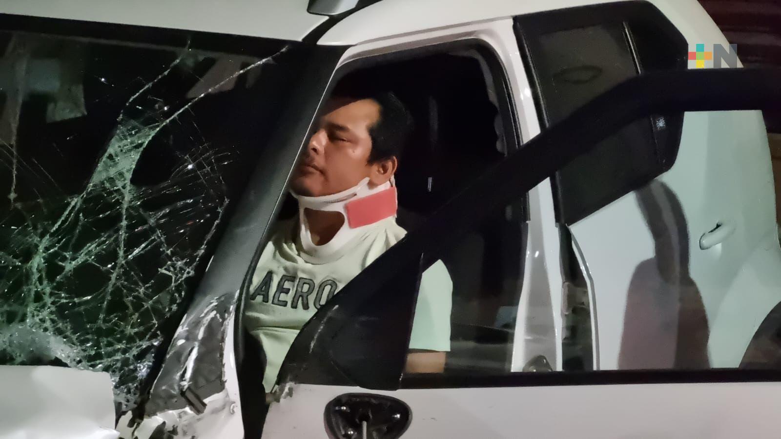 En Coatzacoalcos, accidente deja dos personas lesionadas y cuantiosos daños materiales
