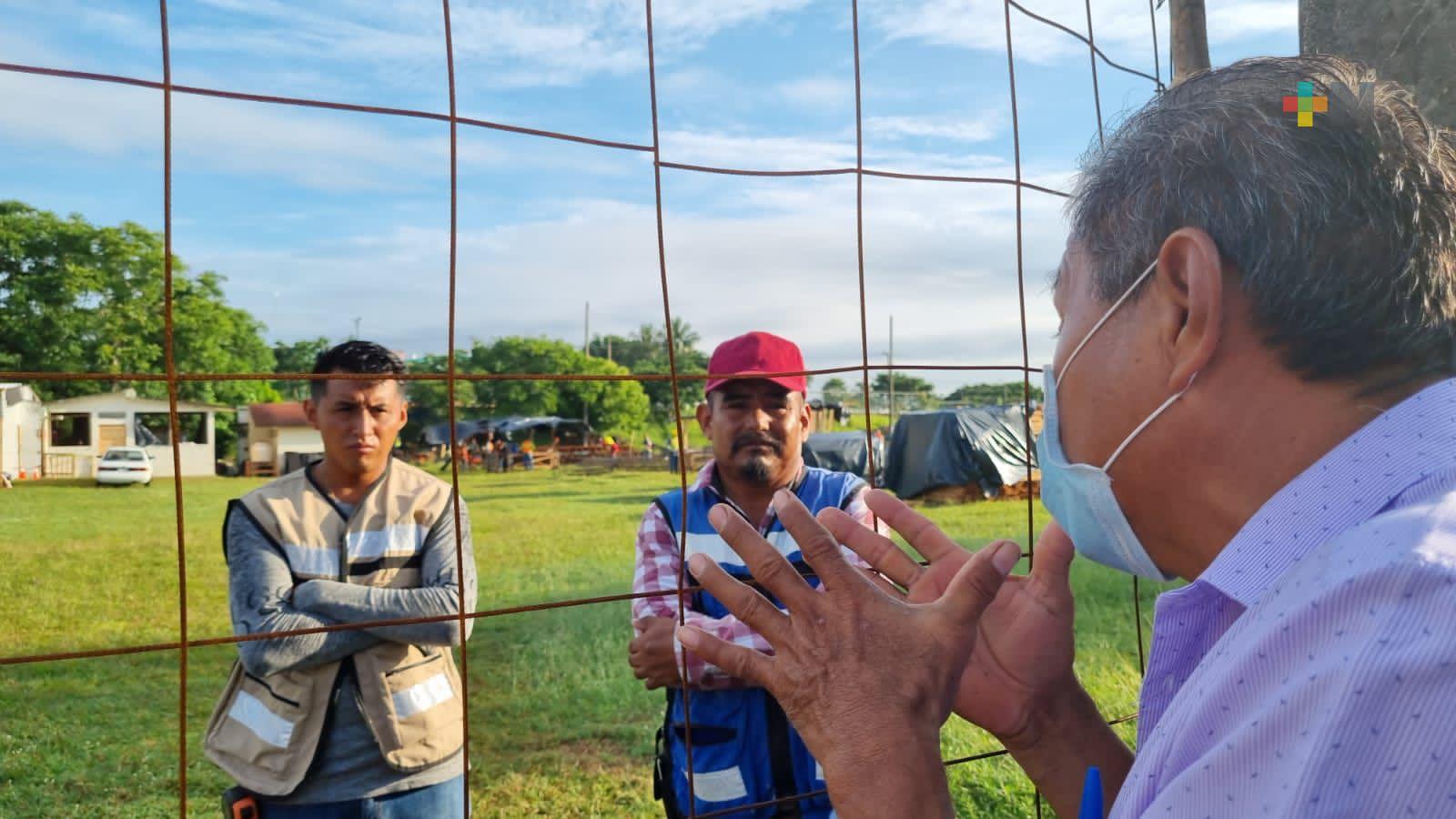 Coatzacoalcos, Ver.- Un grupo de albañiles de la obra del Cuartel de la Guardia Nacional (GN) de Coatzacoalcos se manifestaron la mañana de este lunes por los bajos salarios que perciben de parte de la Secretaría de la Defensa Nacional (Sedena) encargada de la edificación del inmueble en la colonia Brisas del Golfo.