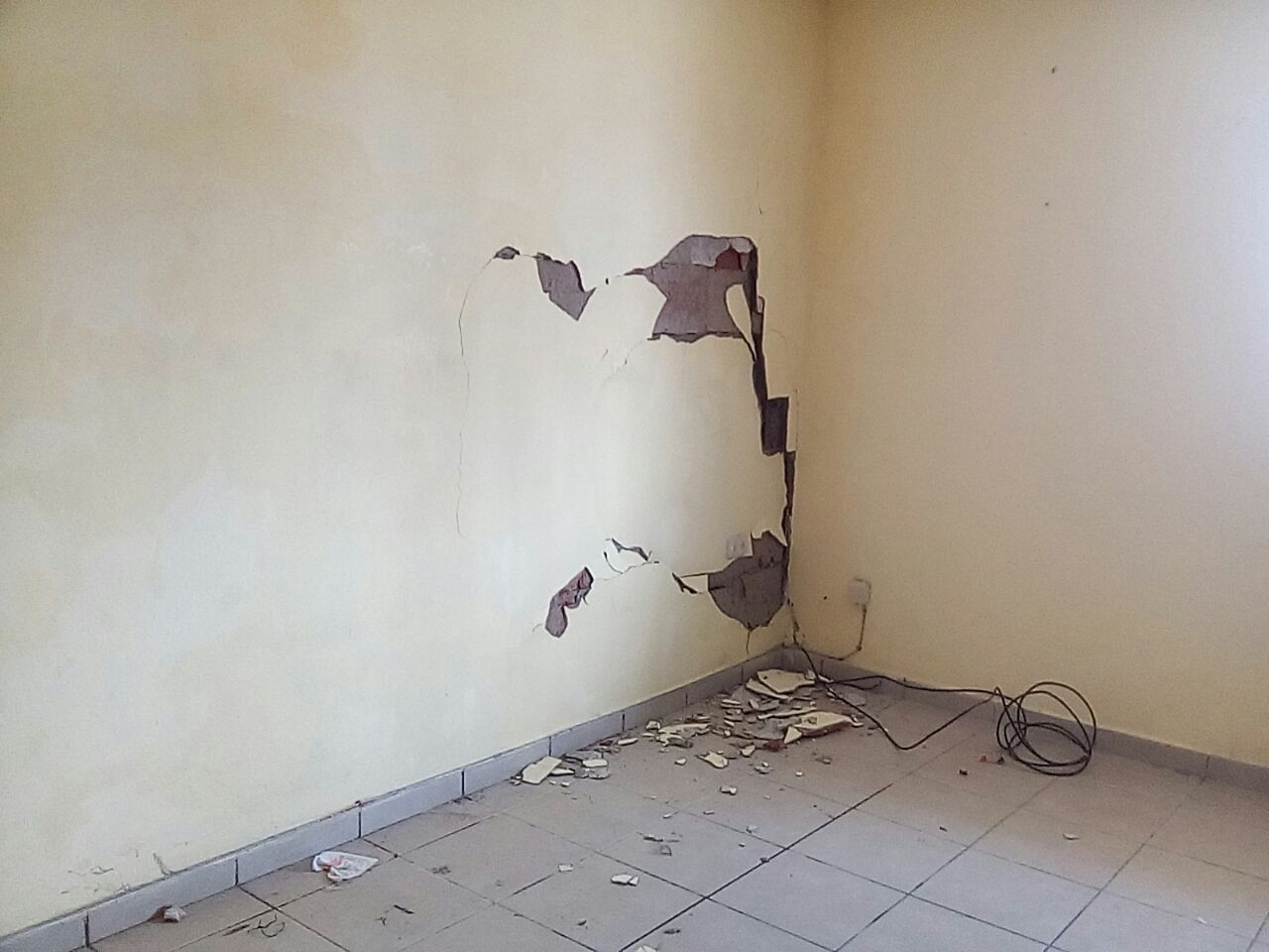 Así, nos muestran que las recámaras están cuarteadas por la mitad, «el agua pasa por en medio de la sala y todo adentro está reclinado, no se puede habitar», señala la dueña de una de las casas.