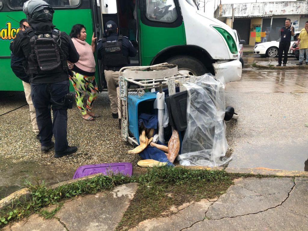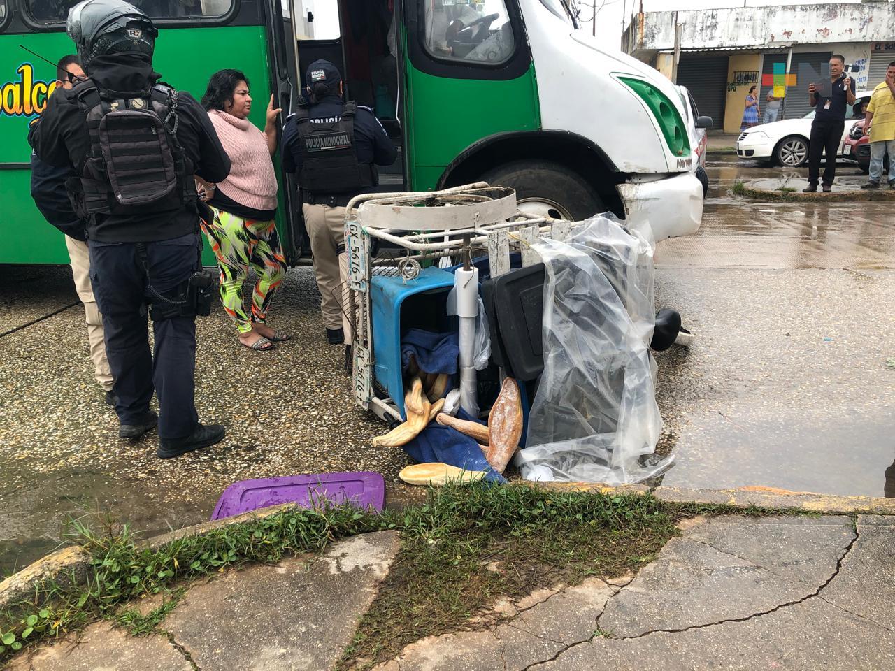 Coatzacoalcos, Ver. – Un masculino lesionado y daños materiales menores fue el saldo de un accidente registrado la mañana de este miércoles en la colonia Francisco Villa de Coatzacoalcos, luego de que un autobús urbano colisionara contra un triciclo de carga conducido por un vendedor de bolillos.